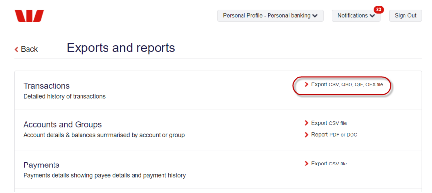 Westpac Online Banking online banking allows users to export your bank transactions in a variety of file formats