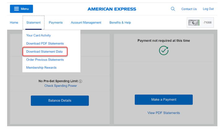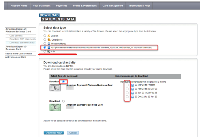 American Express Customer Portal allows users to export their bank transactions in a variety of file formats.