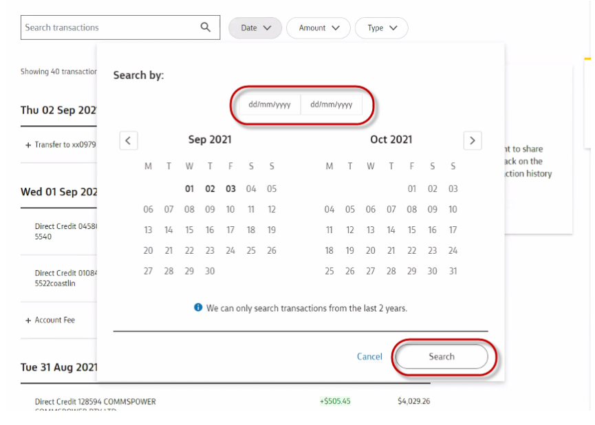 Step 3 : 3. Click on [Dates] and select the period of the transactions you want to export
